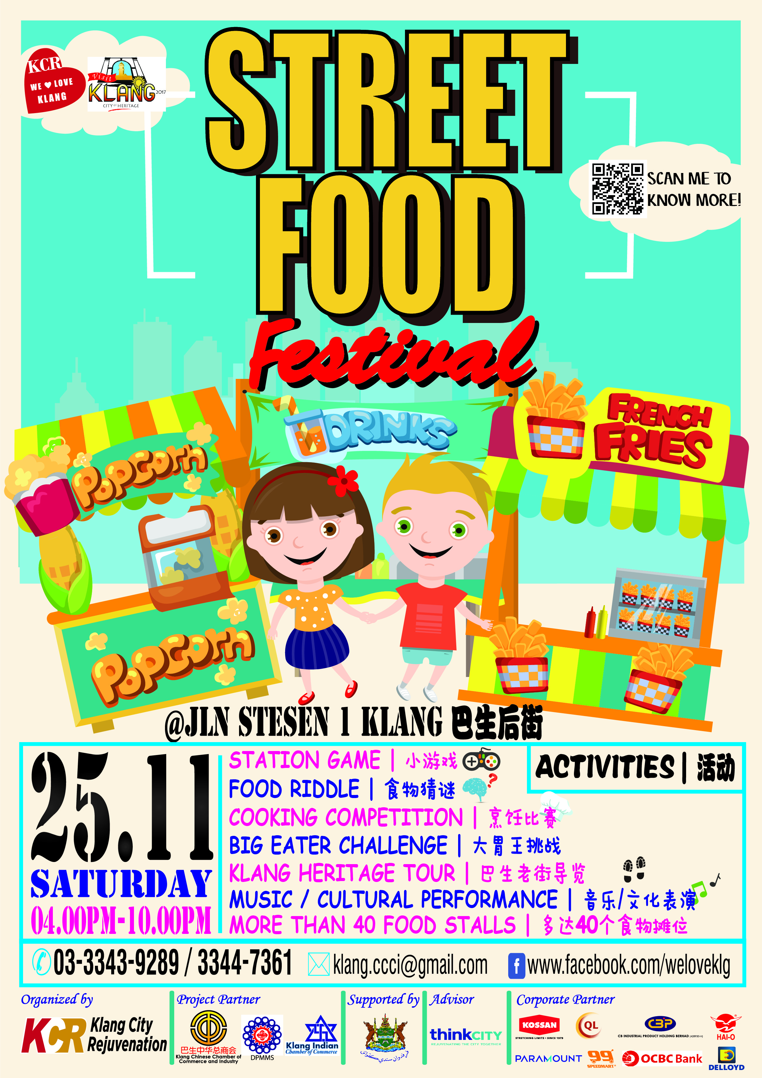 这是一场以美食主题打造的巴生街头小食街!就在25/11,Jalan Stesyen 1 (KTM对面的小巷) !不用去到市中心也吃到不同的美食捏!多个美食摊,闯关游戏及丰富礼品 (〃∀〃) 等着你来体会哟~♡