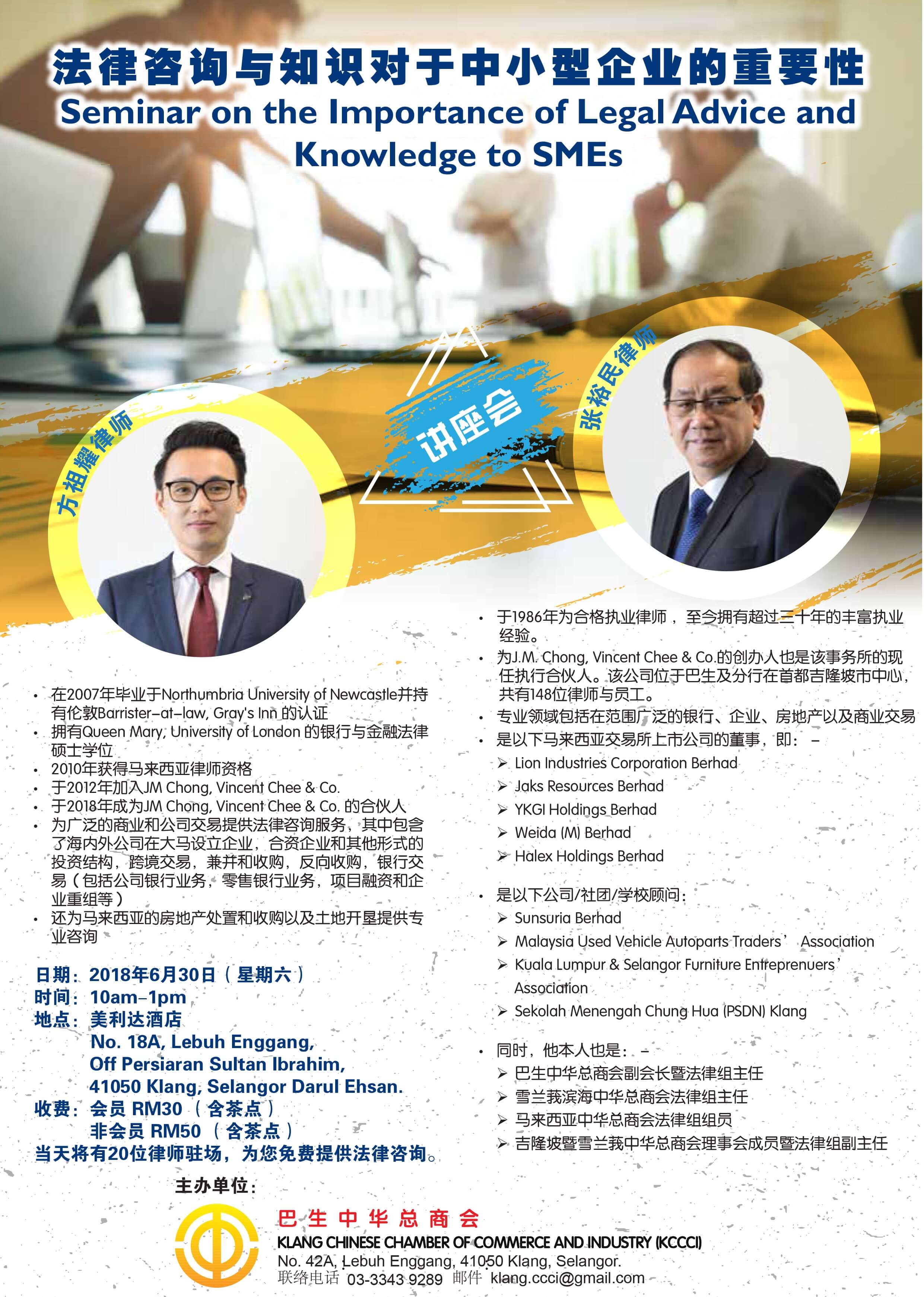 本会将于 2018年6月30日(星期六),上午10时正举办"法律咨询与知识对于中小型企业的重要性"讲座会。