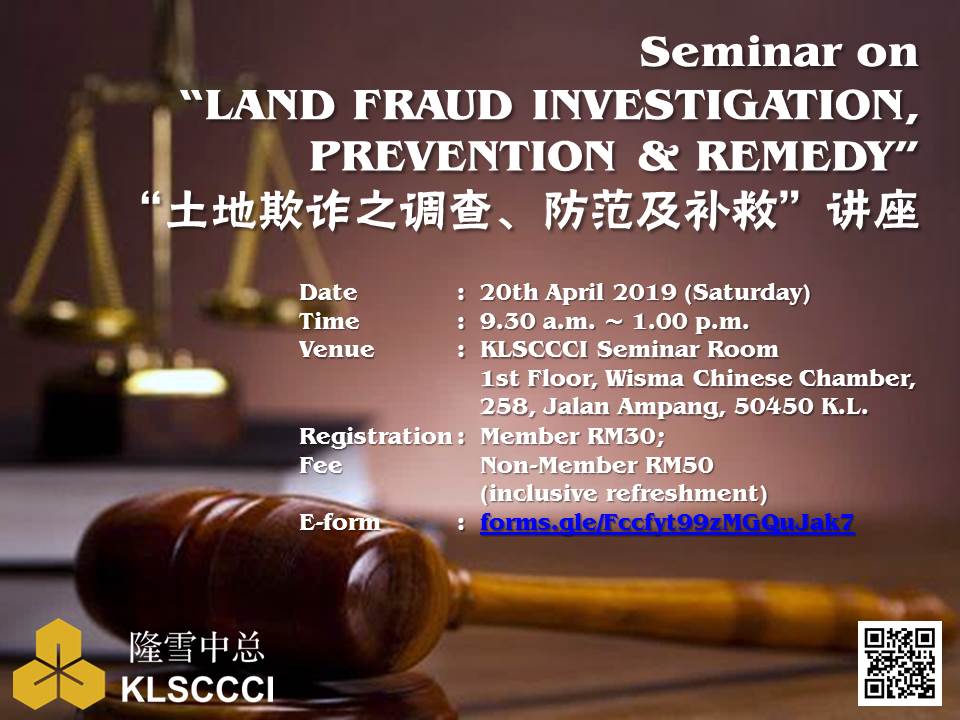 We are pleased to inform that the Chinese Chamber of Commerce and Industry of Kuala Lumpur and Selangor (KLSCCCI) is organising a seminar inviting the retired police officer with 36 years of extensive experience in the field and many professional lawyers to share on related topics of the above Seminar. Details are as follows: