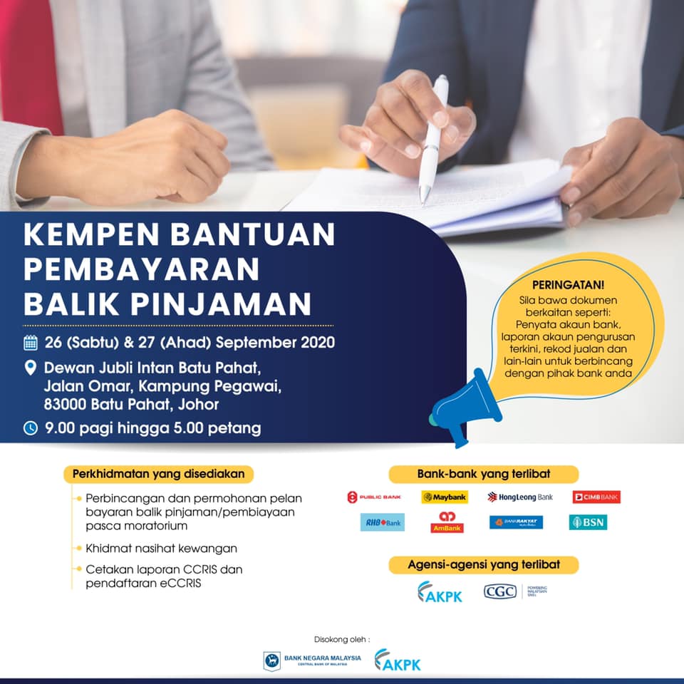 The Central Bank of Malaysia will be organising the Loan Repayment Assistance Campaign on the following dates and venues:
