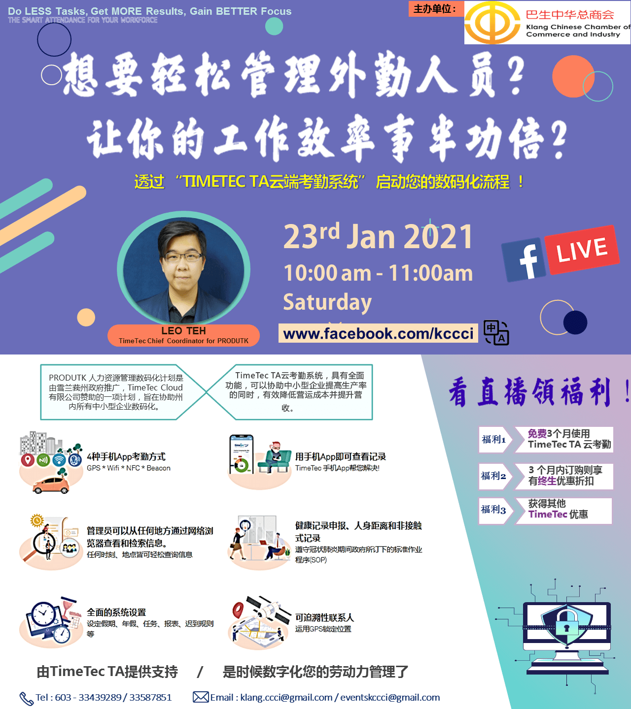 - 透过TimeTec Cloud私人软件公司的分享,为有意转型的会员商家能更了解到该云端考勤方案的各项功能及好处。