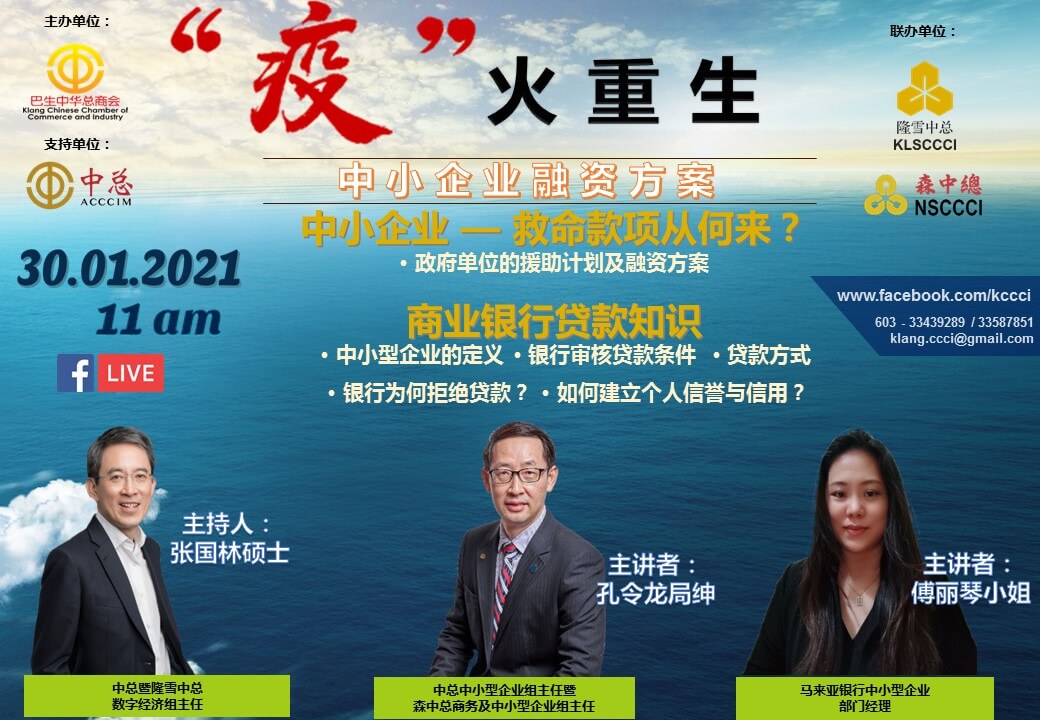 那就不容错过由巴生中总主办,隆雪中总和森中总联办,中总为支持单位的"疫"火重生中小企业融资方案线上直播分享会‼️