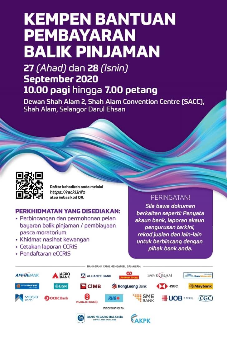 The Central Bank of Malaysia will be organising the Loan Repayment Assistance Campaign on the following dates and venues: