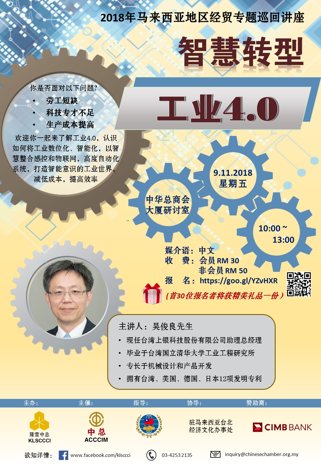 这场讲座将分享工业4.0的重要性和未来趋势,探讨如何实践工业4.0和可能面对的问题及其解决方案。欢迎各商家,会员踊跃报名参加。