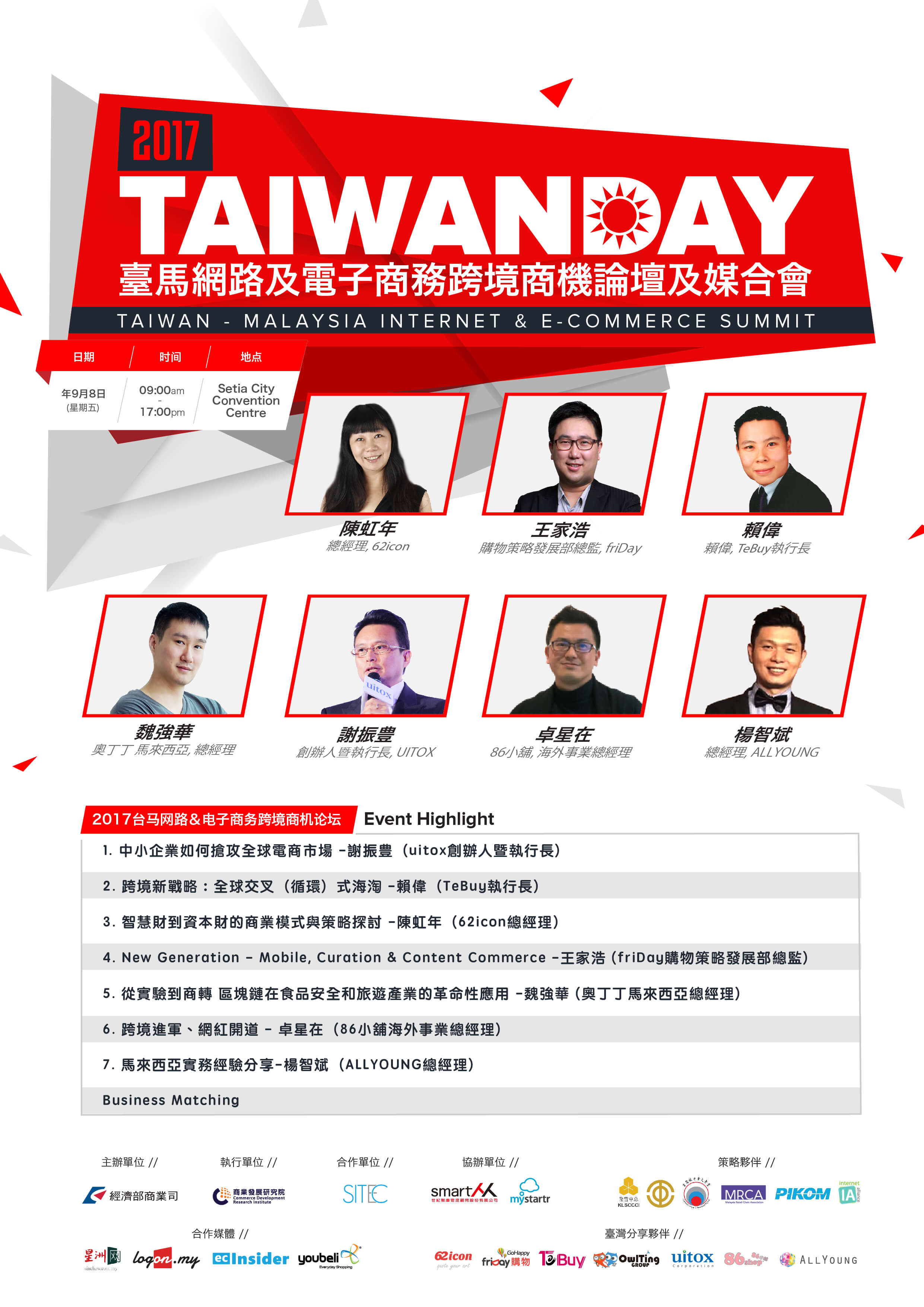 为了加强大马的电子商务产业发展多元面向,促成产业长期交流及寻找最优秀的跨境合作伙伴,雪州资讯科技与电子商务理事会(SITEC – Selangor Information Technology & E-Commerce Council),联同台湾商业发展研究院及财团法人资讯工业策进会,于9月8日(星期五),上午9时至下午5时,假Setia City Convention Centre举办“台马网路&电子商务跨境商机论坛” 。