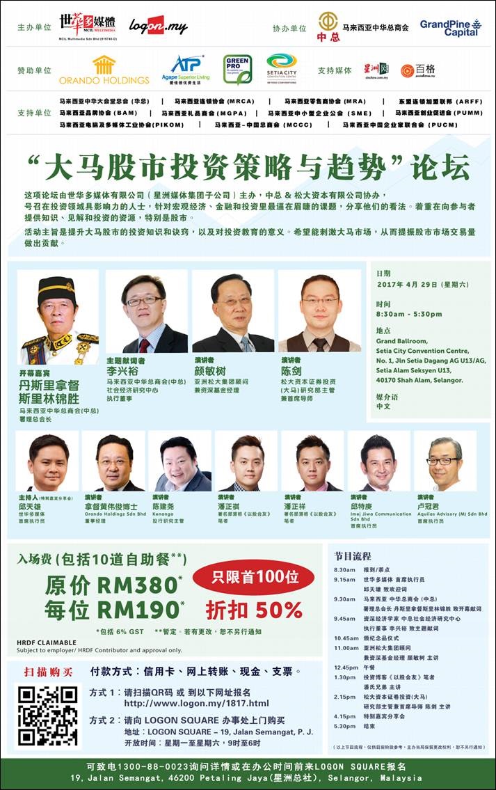 世华多媒体及电子商务平台Logon(热购)将主办“ 大马股市投资策略与趋势论坛”,详情如下: