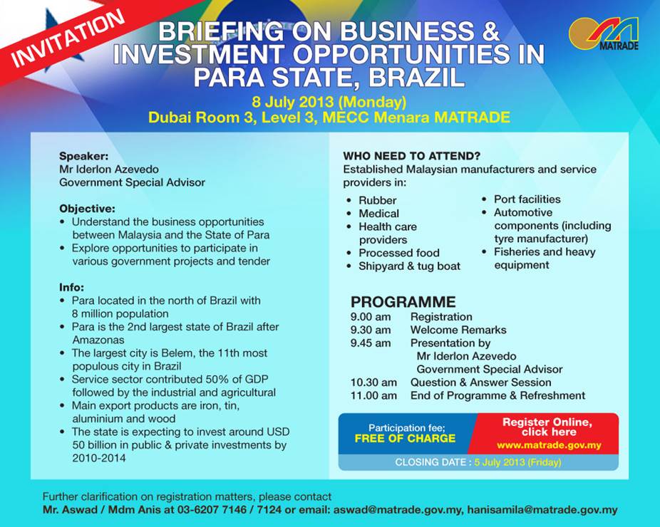 We are delighted to invite you to our briefing on “Business & Investment Opportunities in Para State, Brazil”.